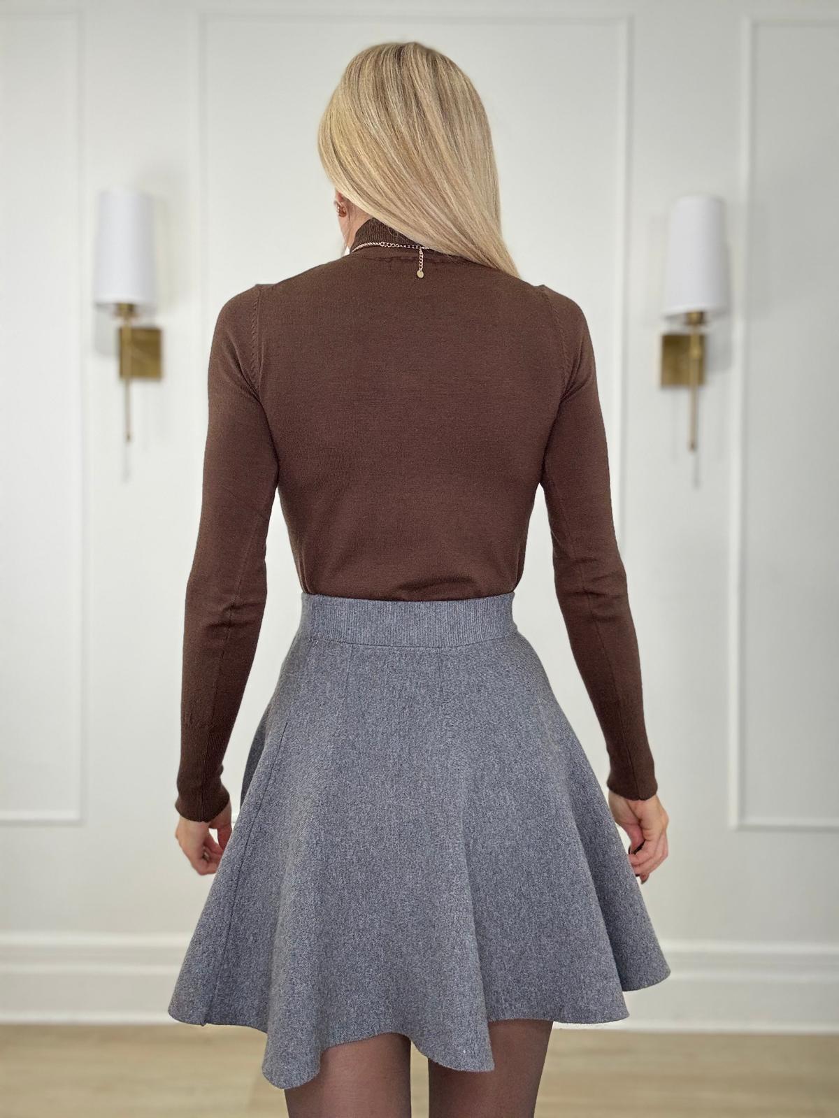 Turtle neck ribbed knit top featuring long sleeves with button detailing at cuffs.