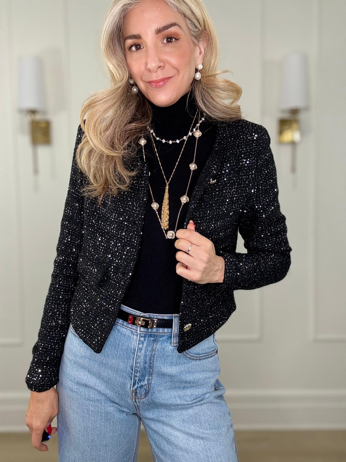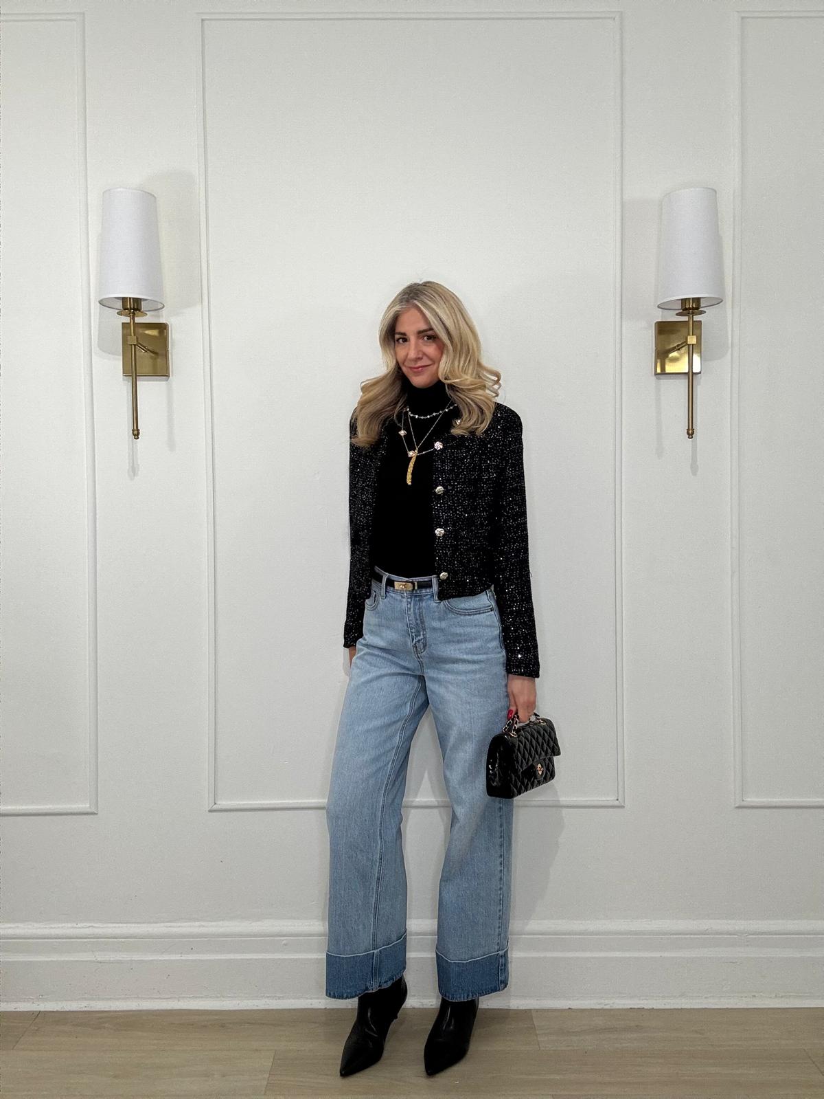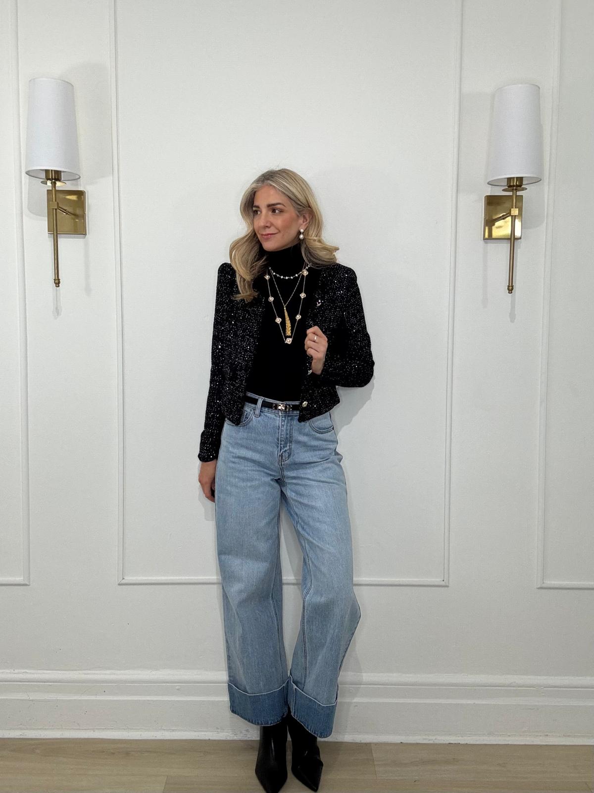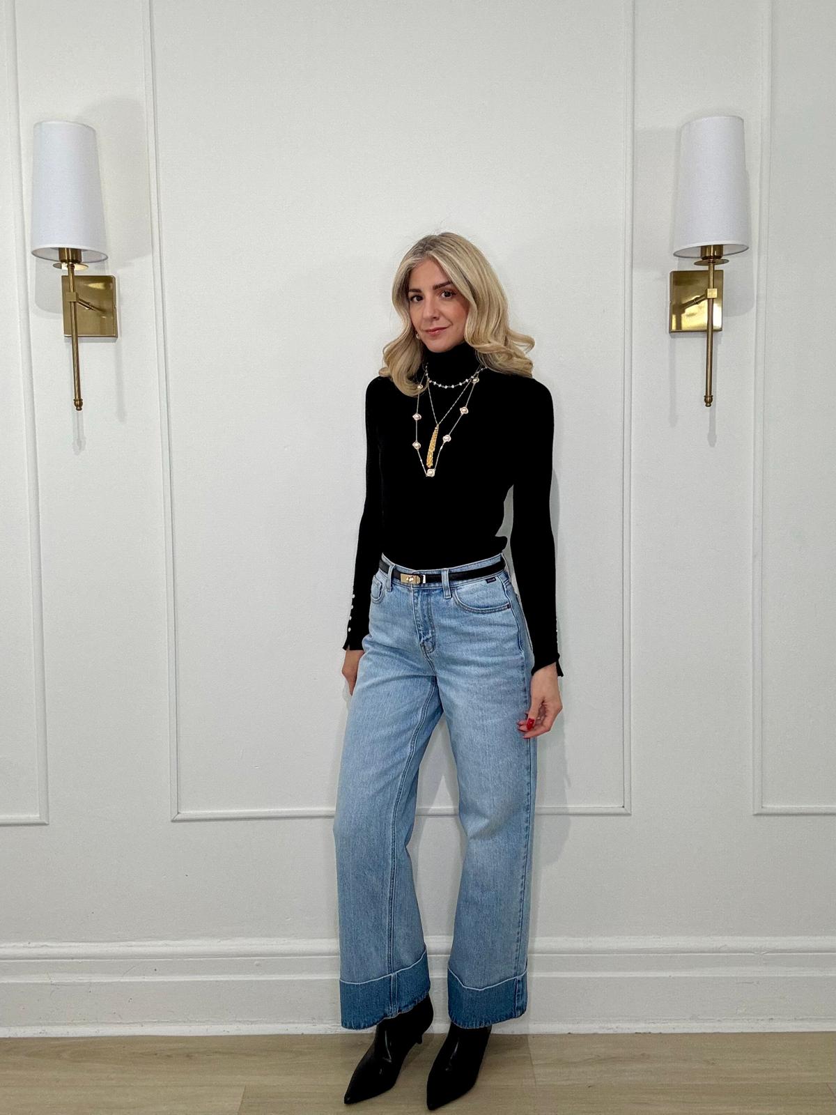 Turtle neck ribbed knit top featuring long sleeves with button detailing at cuffs.