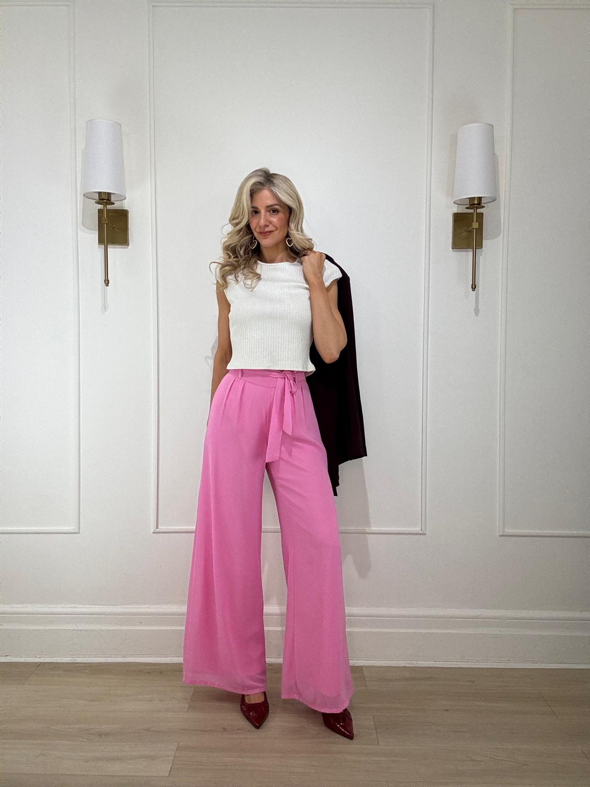 Ciffon tie front smocking back waist fully lined palazzo pants.