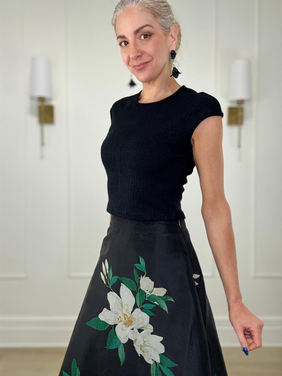 Round neck ribbed knit crop top.