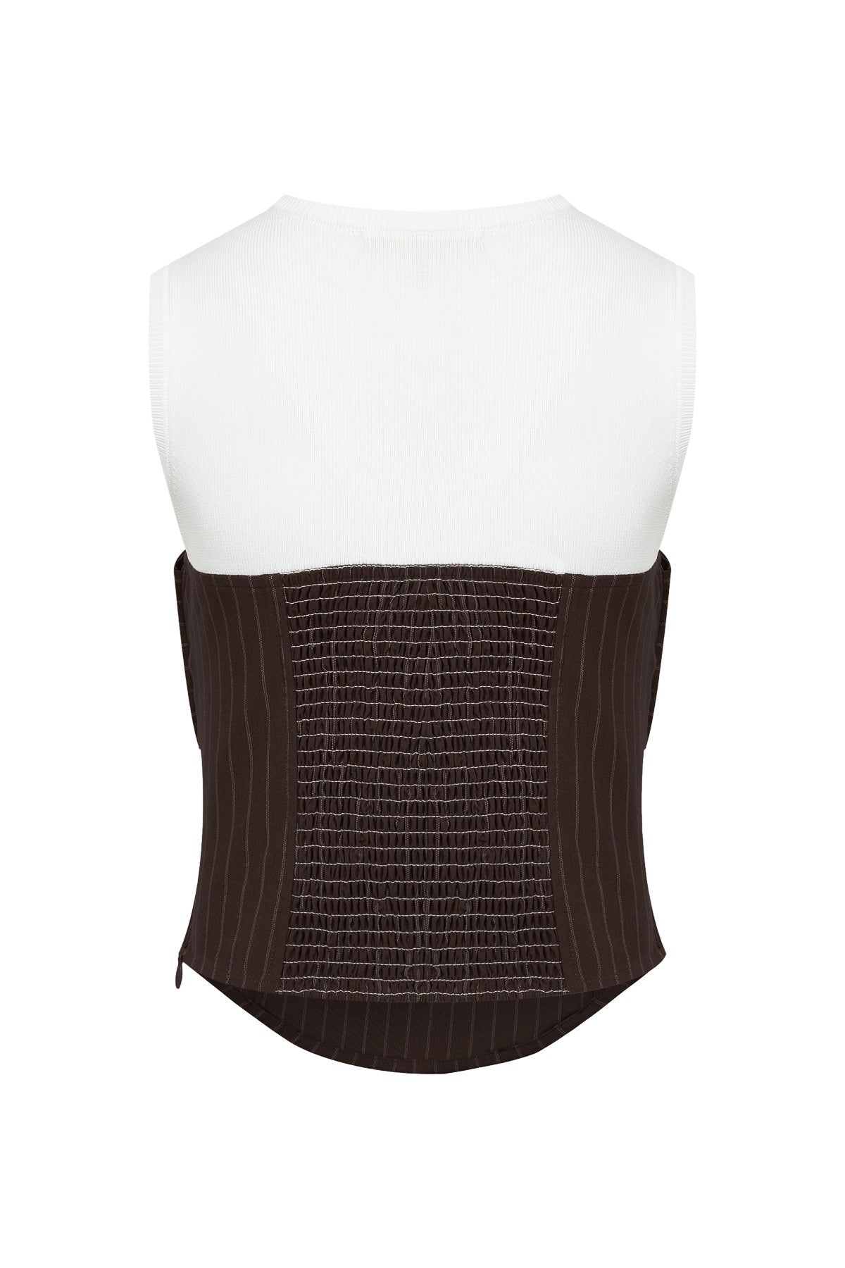 Knit striped bow tie front top with back smocking.