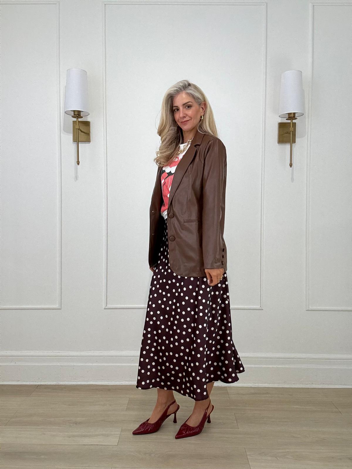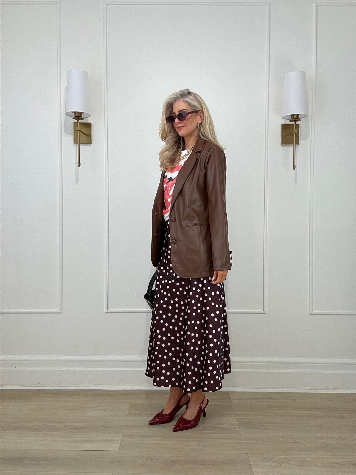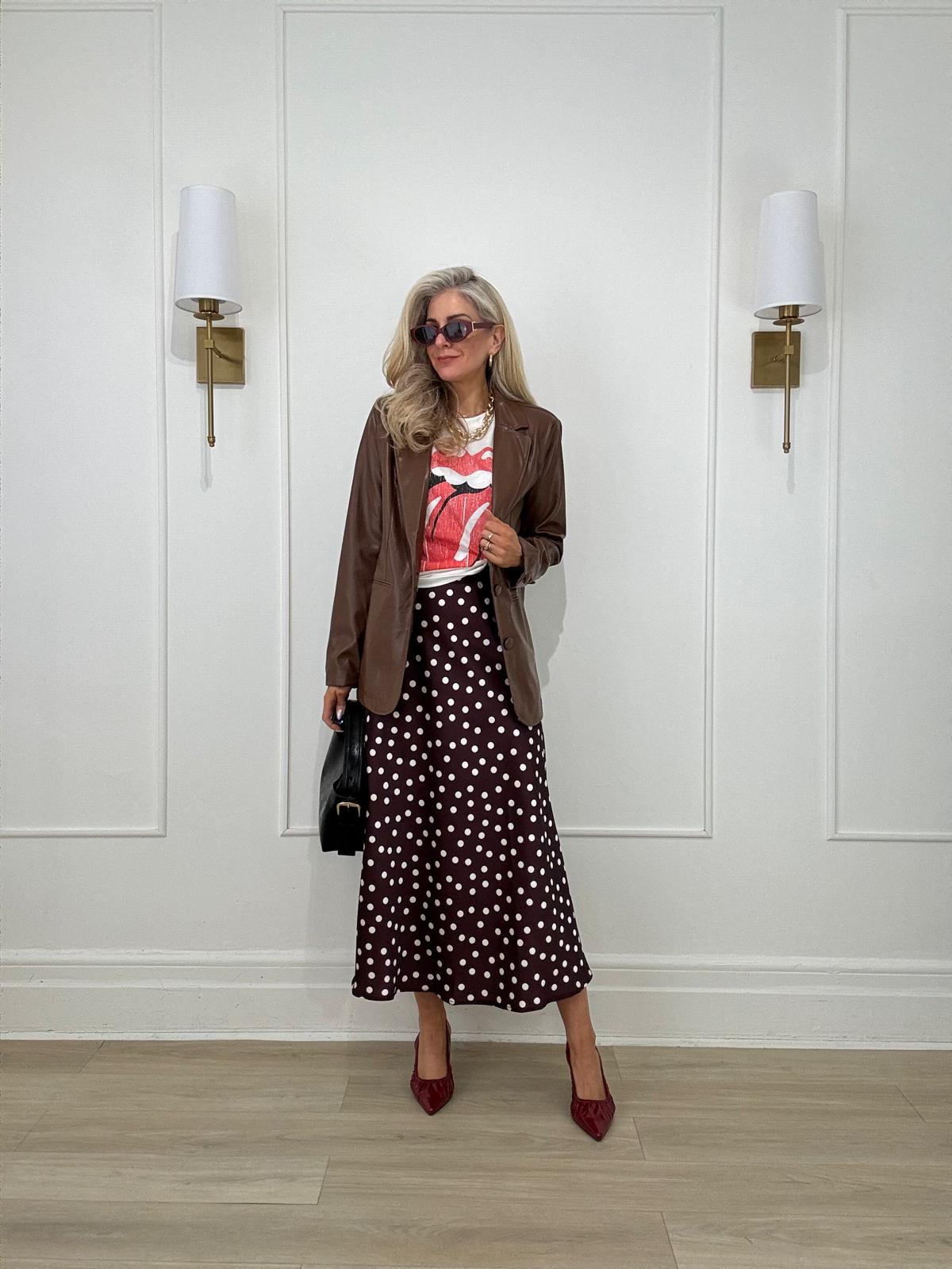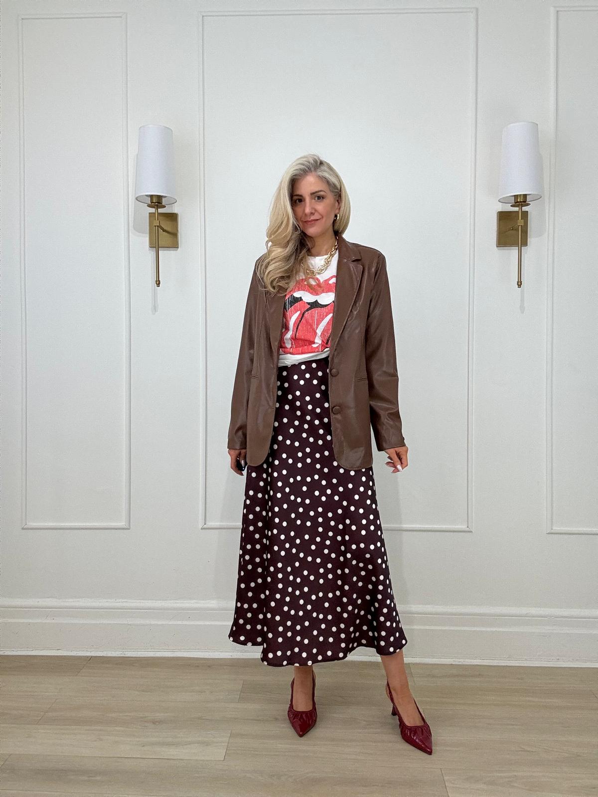 Polkadot midi skirt.